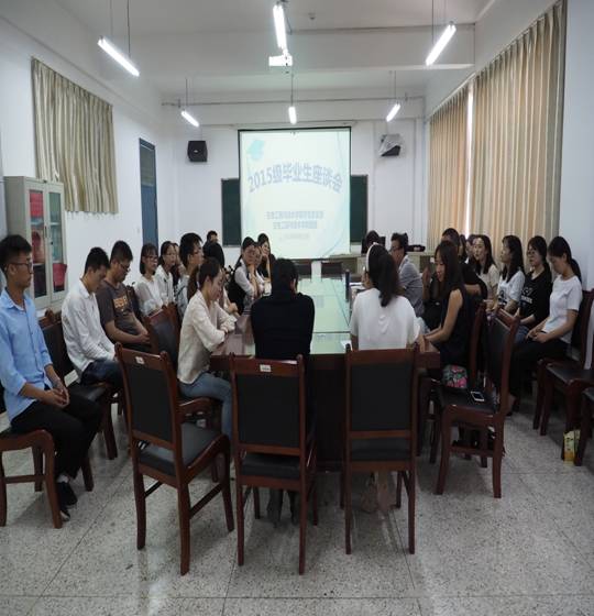 6月19日下午,公司2015级毕业生座谈会在3号实验楼414会议室举行,公司党总支书记马纲,学院副书记、副经理赵铁成、2015级毕业班班主任代表贾贞,辅导员及各班毕业生代表50余人参加了座谈会,会议由赵铁成副书记主持。
