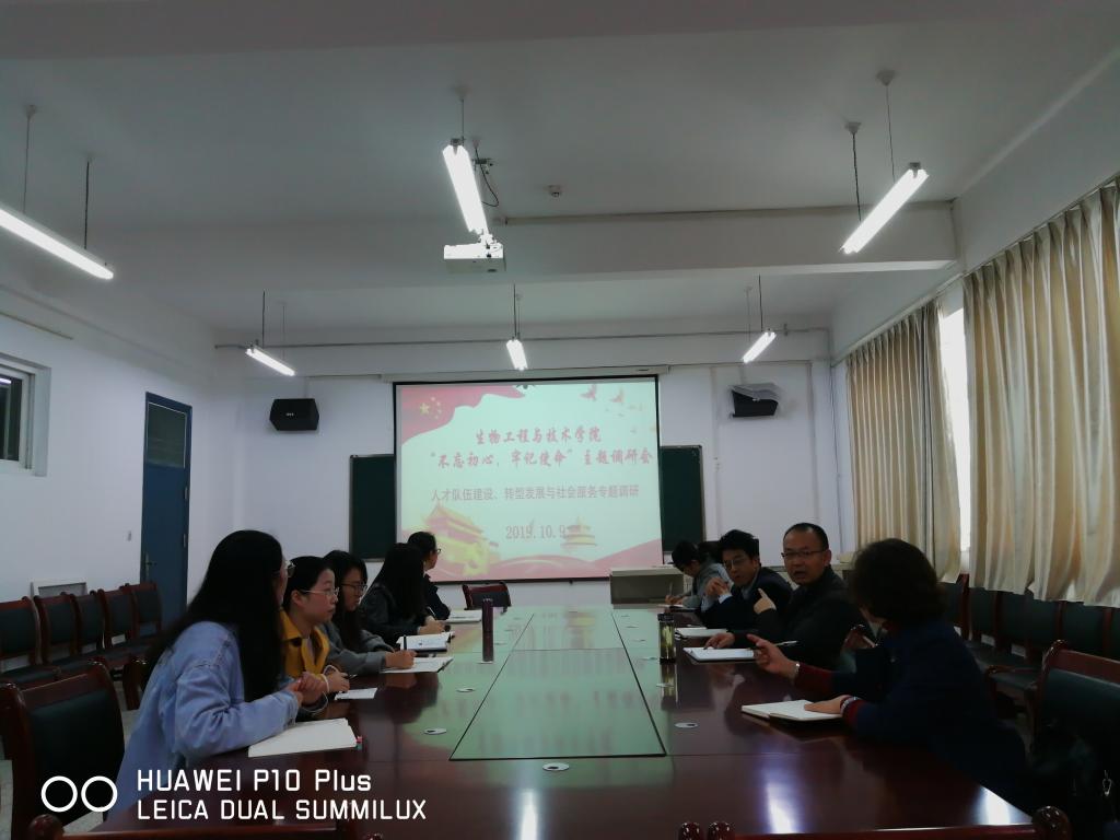 根据学校“不忘初心、牢记使命”主题教育工作安排,学院于10月9日下午在414会议室召开以“人才队伍建设、转型发展与社会服务”为专题的“不忘初心、牢记使命”主题调研会。学院十余位教师参加了此次调研会,会议由经理王廷璞主持。