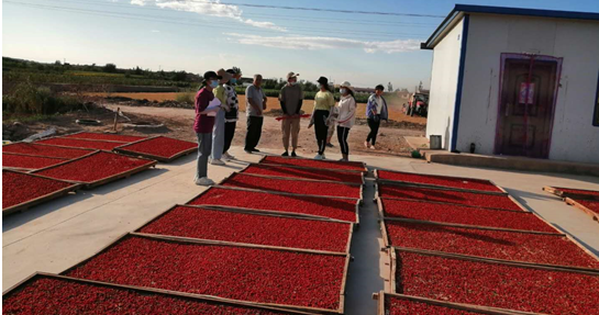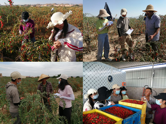 本次实践活动以甘肃省靖远县“靖远枸杞采摘节”为契机,对靖远县北滩镇枸杞种植农户、加工厂、合作社等进行实地走访调研,以调查问卷形式向农户了解当地枸杞主栽品种、种植结构、主要病虫害发生情况、常用农药使用情况、生产技术需求、加工流程、销售渠道、农户希望获得的农业生产技术支持及惠农政策等基本情况,体验枸杞采摘和烘干加工过程,了解当地枸杞品牌创建及产品推广情况。实践团为农户印制了《枸杞病虫害综合防治技术宣传册》,从主要病虫害的发生特点、防治技术、不同生产时期综合防治措施等方面为当地农户提供技术支持与参考。希望通过此次实践活动,对地方优势产业现状进行专业分析,让青年员工聚力西部开发,围绕农村科技创新等内容,为当地枸杞产业发展提供服务,为推动富民产业升级做出努力。