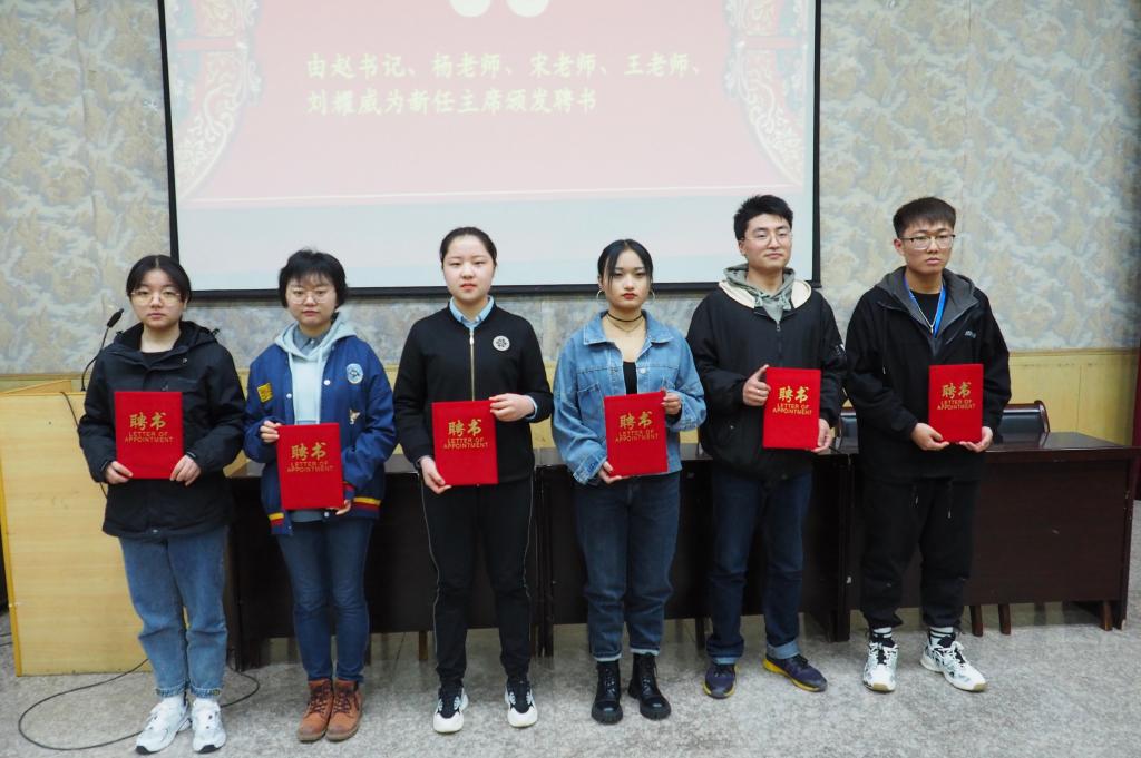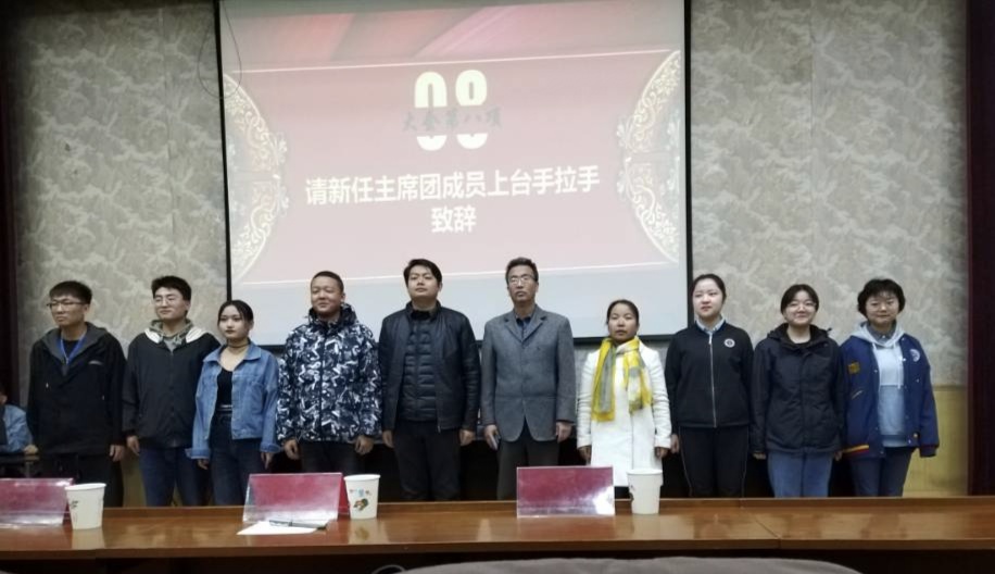 新当选员工会成员手拉手面对同学们一一发表了感言,表示听党话,跟党走,虚心向学长学习,努力做好各项服务工作,一定不辜负大家的期望。