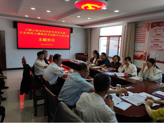 甘肃省小陇山林业实验局林业科学研究所党支部书记张保全带领全体党员学习了习近平总书记关于党史学习的6个重要讲话,并介绍了小陇山林区近年来发现的野生樱桃种质资源的情况,希望双方在野生樱桃种质资源方面进一步展开深入合作。