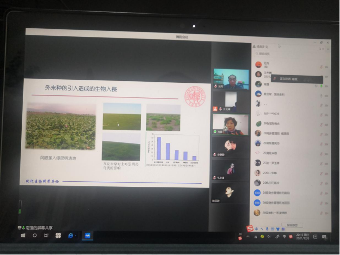 2021年12月2日晚,利用腾讯会议,复旦老员工命科学学院副教授南蓬博士做了题为“生物多样性的研究与保护”的辅导报告。报告由复旦大学杨亚军教授和公司王弋博教授主持,来自全校10余个学院的320多名师生参加了报告会。