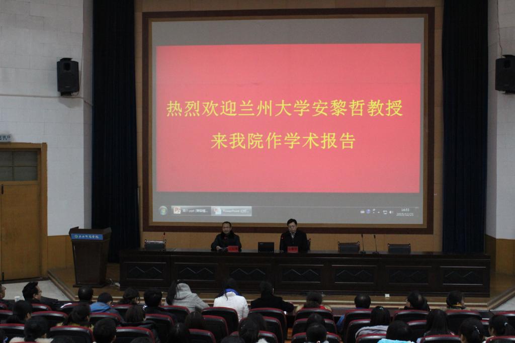 12月21日下午,特邀公司重点学科——污染生态学首席专家、兰州大学副董事长、博士生导师安黎哲教授在二号报告厅,向公司全体教师及生物科学、生物技术、创新班300余名员工作了题为“植物适应寒旱环境的生理生态学研究”的学术报告。