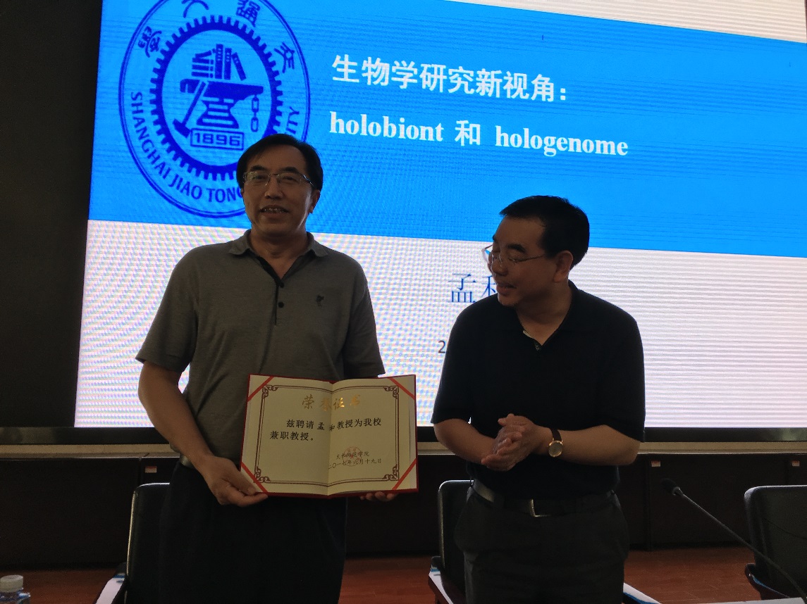 孟和教授在2号报告厅作了题为“生物学研究新视角:holobiont 和hologenome”的学术报告。报告会由w88win优德王廷璞经理主持,报告开始前,公司党委委员、师平安副书记代表学校向孟和教授颁发了兼职教授聘书和甘肃省高校农业微生物重点实验室名誉主任聘书。学院教师和各专业本科生等二百余人聆听了报告。
